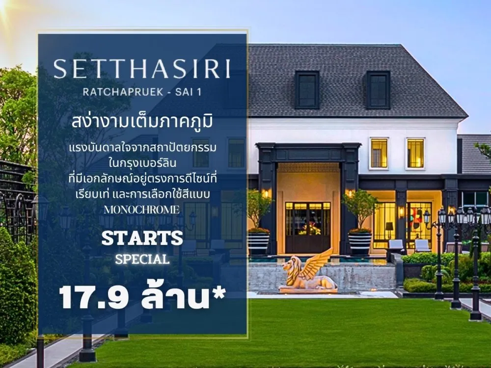 Setthasiri Ratchaphruek-Sai 1 เศรษฐสิริ ราชพฤกษ์ – สาย 1 สง่างามเต็มภาคภูมิ​ ครั้งแรกกับ Berlin Architecture ที่ผสานความแข็งแกร่ง และความงดงามไว้ในหนึ่งเดียว​ ภายใต้แนวคิด (Elegance Aesthetic) แรงบันดาลใจจากสถาปัตยกรรมในกรุงเบอร์ลิน​ ที่มีเอกลักษณ์อยู่ตรงการดีไซน์ที่เรียบเท่ และการเลือกใช้สีแบบ Monochrome ​ นอกจากนี้ เศรษฐสิริ ราชพฤกษ์ – สาย 1 ยังมาพร้อมฟังก์ชัน Open Plan ที่เชื่อมต่อ “Pocket Garden” พื้นที่สีเขียวขนาดใหญ่หลังบ้าน ให้คุณพักผ่อนสมบูรณ์แบบท่ามกลางสังคมส่วนตัว บนทำเลดีพร้อมให้คุณใช้ชีวิตที่สง่างามได้อย่างเต็มภาคภูมิ