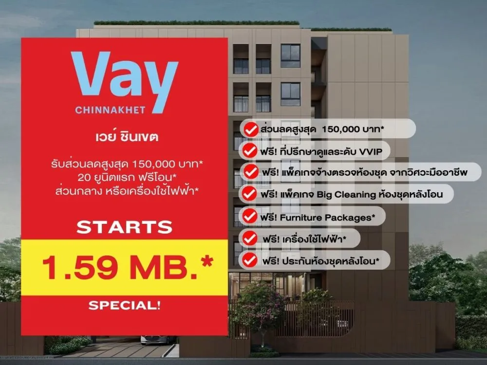 รับส่วนลดสูงสุด 150,000 บาท* 20 ยูนิตแรก ฟรีโอน, ส่วนกลาง หรือเครื่องใช้ไฟฟ้า**